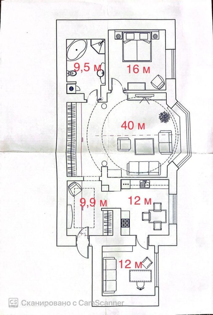 Площадь квартиры (в кв.м) общая-100, жилая-68, комнат 40/16/12. Высота потолков-3,05.
