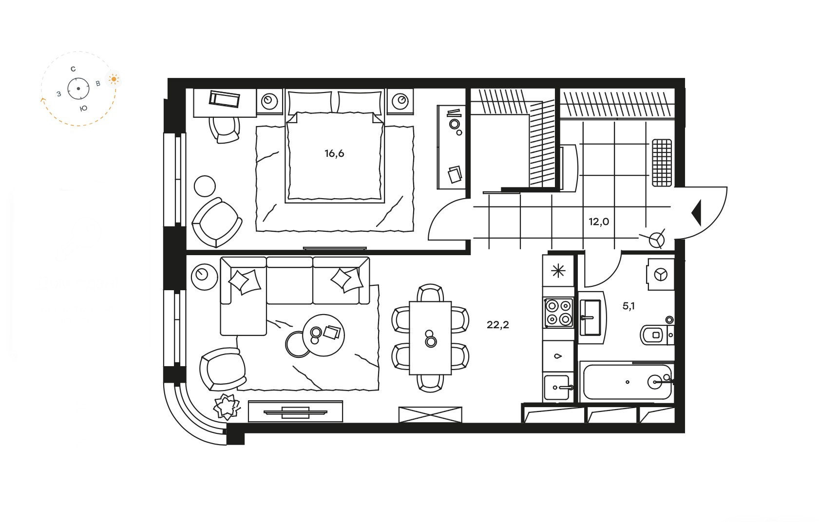 -спальня 16,6 м2;