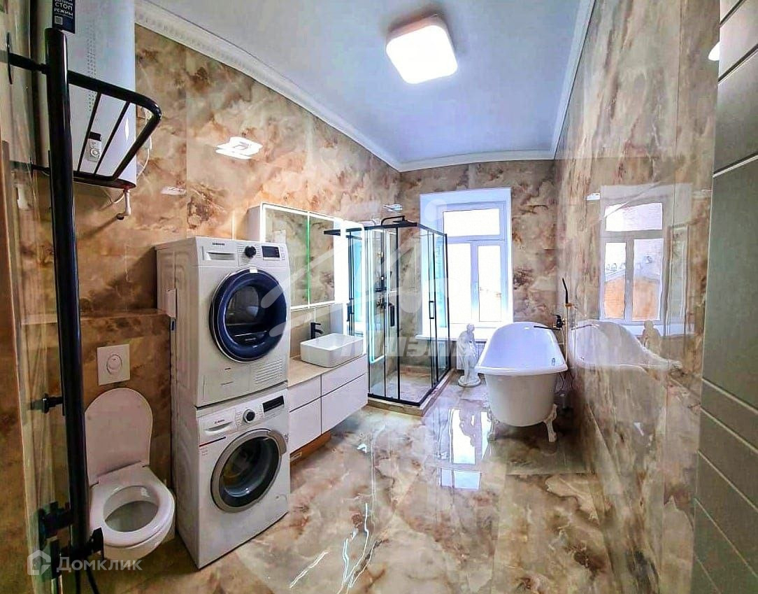 Арт. 28318265 Уникальное предложение. Второй такой квартиры на рынке НЕТ. Эксклюзивный евроремонт. Индивидуальный дизайнерский проект. 4-х комнатная квартира. Квартира расположена на 3 этаже 5 этажного  дома. Перекрытия железобетонные. Общая площадь 160 кв.м. Квартира теплая, заменены все компоненты системы отопления, окна производства Kaleva.Покрытие пола: ламинат и плитка, стен: обои премиум-класса. Металлические плинтусы по всей квартире в едином стиле. Высокие потолки (3,4 м) - конструкции на основе гипсокартона с подсветкой и выровненный родной потолок (никаких натяжных элементов). Электрика LEGRAND, все розетки сгруппированы по функционалу, каждая группа выведена на отдельный автомат с защитой. Встроенные стиральная и посудомоечная машины, микроволновка и духовка, фильтр воды. Сантехника Hansgrohe. Балкона нет. Банковские бронированные двери. 4 видеокамеры с передачей данных на смартфон. Паркинг во дворе. Въезд во двор со шлагбаумом.