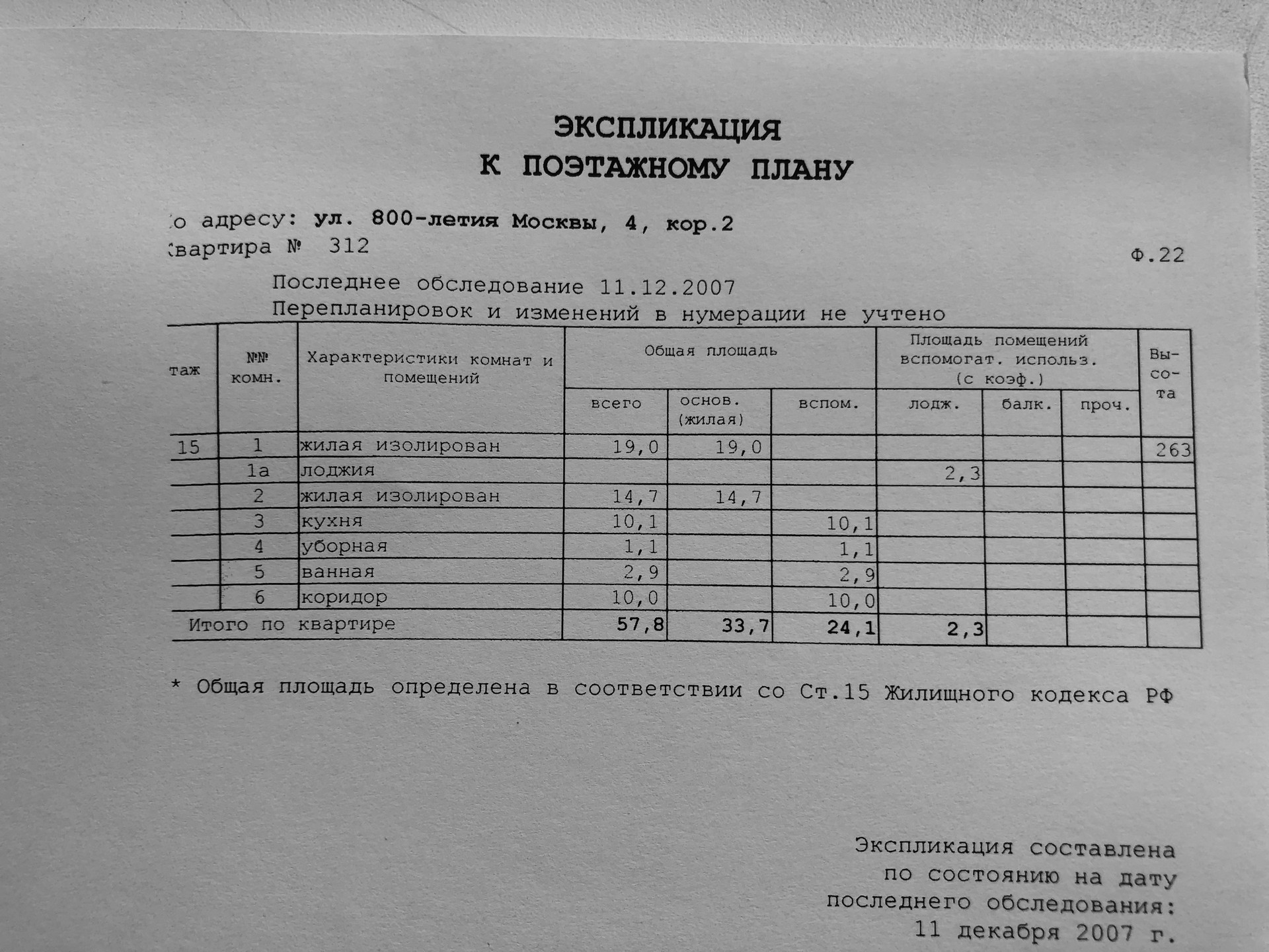 Общая площадь 57.8 м2