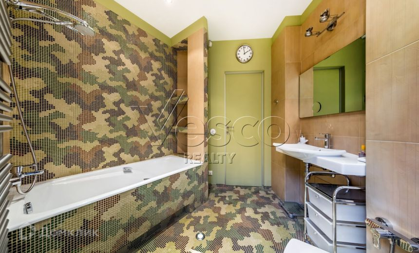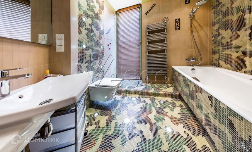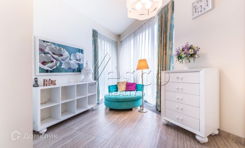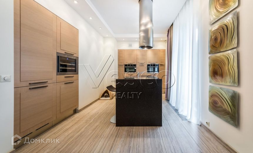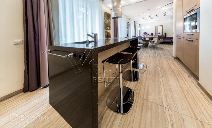 Внутреннее пространство выдержано в современном стиле, с применением натуральных материалов: травертина, дерева, керамики. В квартире преобладает преимущественно светлая цветовая гамма с яркими акцентами мебели Il loft (Италия) и Reclainer (Дания). Квартира полностью меблирована и декорирована, оборудована всей бытовой техникой.