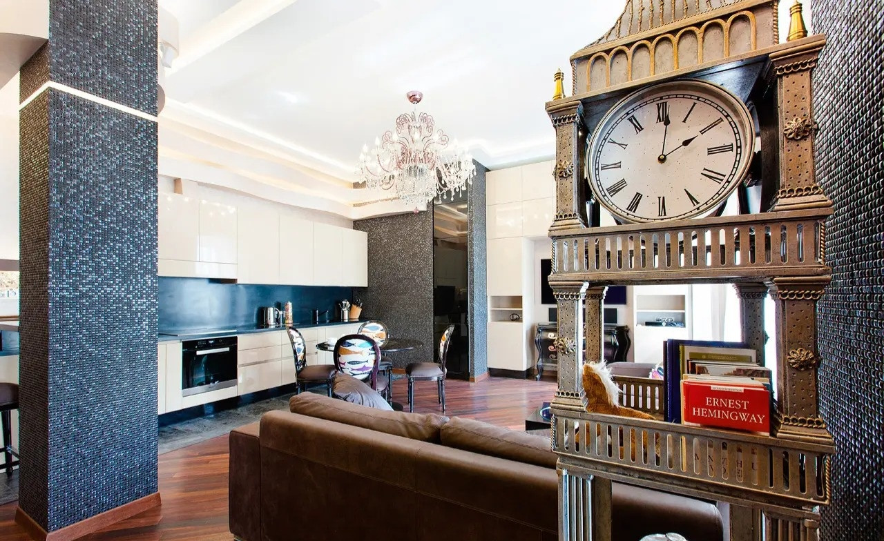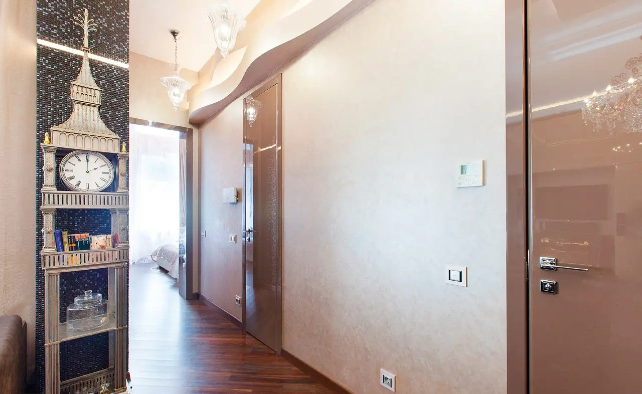 В квартире осуществлён высококачественный евроремонт в современном классическом стиле с применением дорогостоящих отделочных материалов. На полу настелен дубовый паркет, стены и потолки идеально выровнены и окрашены, нанесена художественная штукатурка. Квартира оснащена встроенной кухней, комплектом бытовой техники от ведущих мировых производителей, встроенными шкафами-купе, современными стеклопакетами, кондиционерами, биметаллическими радиаторами, металлической входной дверью, сигнализацией., круглосуточная профессиональная охрана, благоустроенный двор, подземный паркинг.