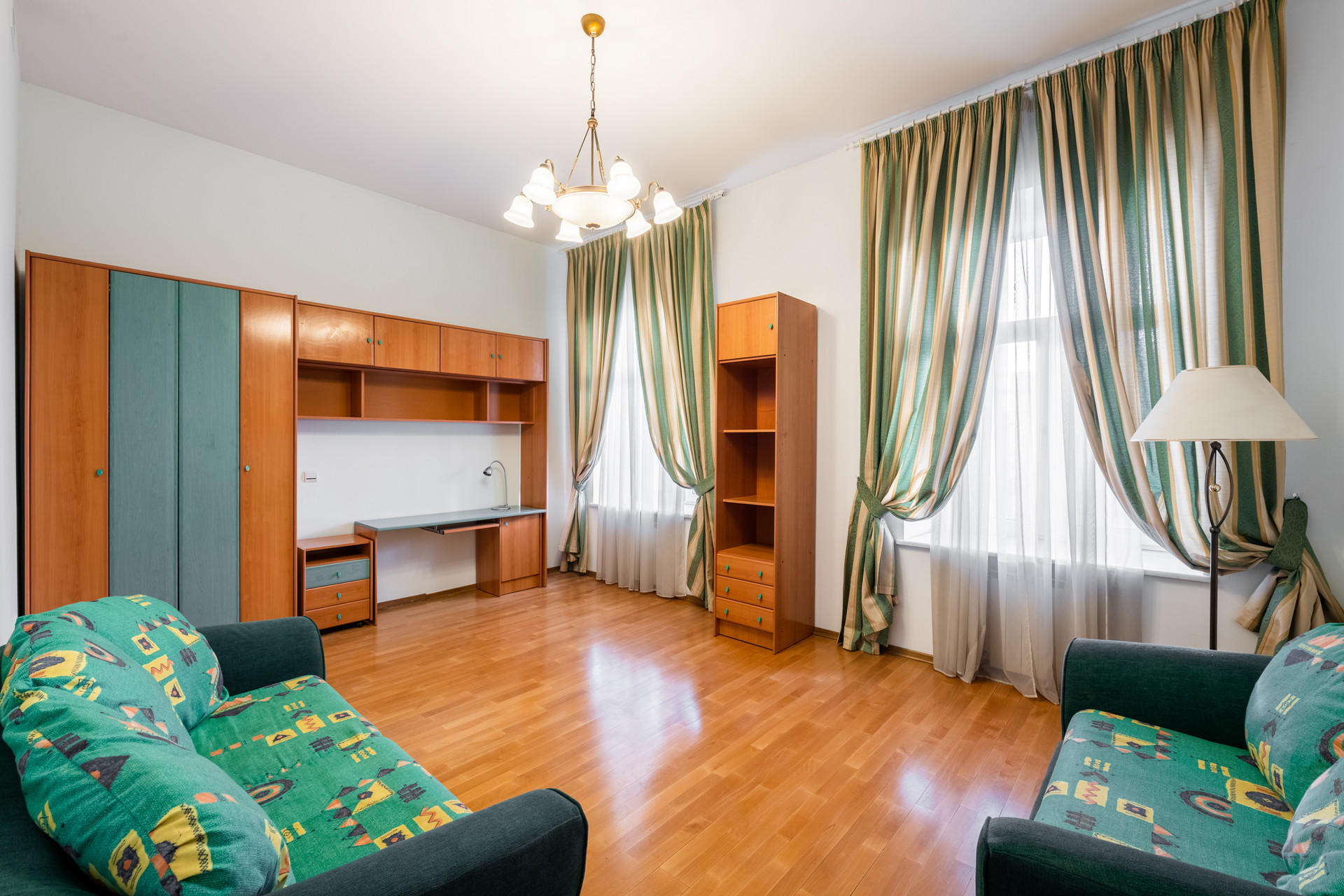 Окна всех комнат обращены на закрытые для движения транспорта площадь и Климентовский переулок и обращены в сторону запада, северо-запада и севера. Окна кухни выходят на восток. В квартире тихо. На окнах установлены стеклопакеты. Высота потолков 4м.