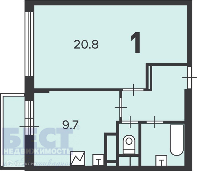 Жилая площадь 20.8 м2