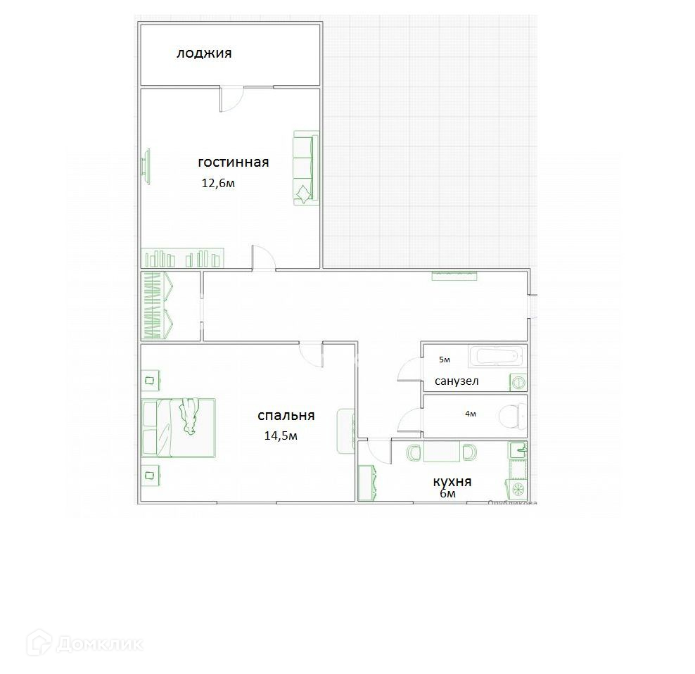 Жилая площадь 21.7 м2