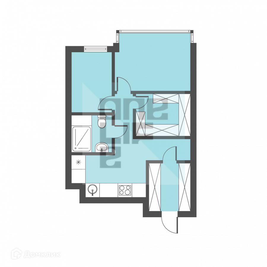 Планировка: кухня, две спальни, сан. узел, гардеробная.