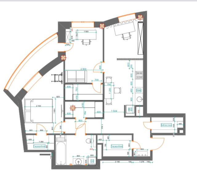 Планировка ориентирована на современный стиль, с хранением всех вещей в гардеробных. Если что-то в ней не устраивает, то на данном этапе не сложно и не дорого это поменять. Во всей квартире всего одна (!) несущая колонна вне капитальных стен, поэтому возможны любые варианты.