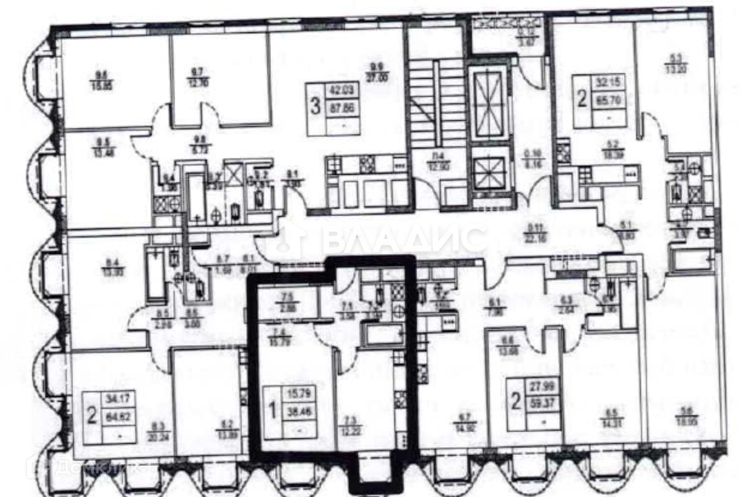 Общая площадь однокомнатной квартиры 38,60 м.кв, кухня-гостинная 12,22 м.кв., комната 15,79 м.кв.