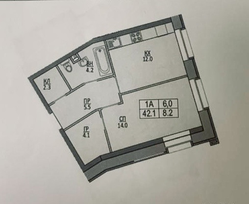 Общая площадь 42.1 м2