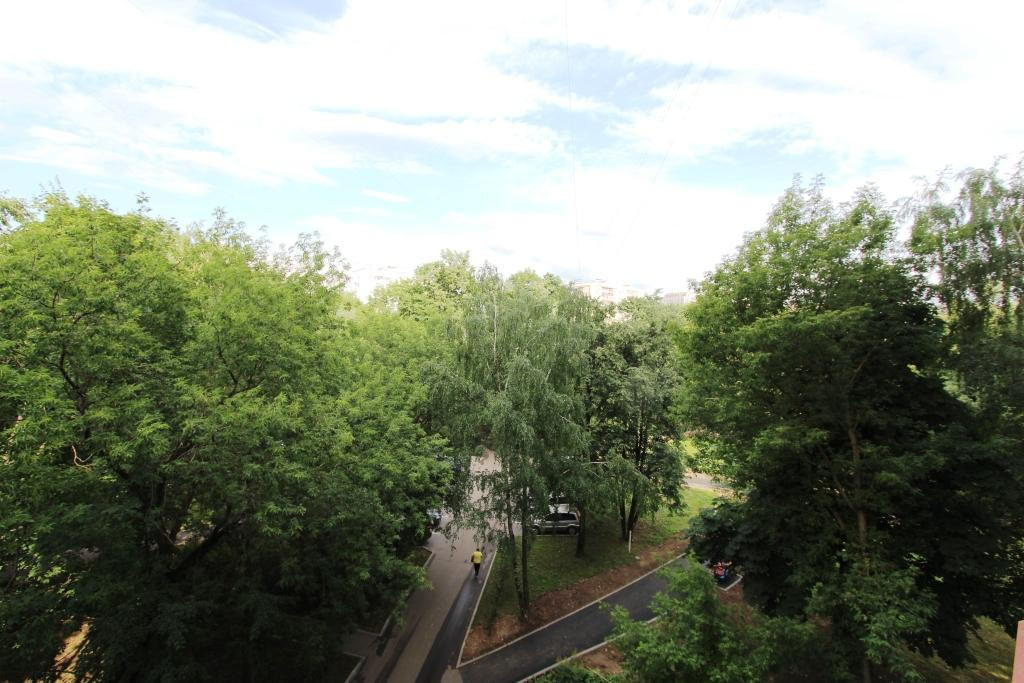 Продается просторная однокомнатная квартира. Из окон вид на тихий зеленый двор.