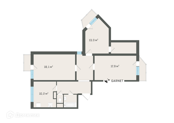 - Комнаты не соприкасаются с мокрыми точками