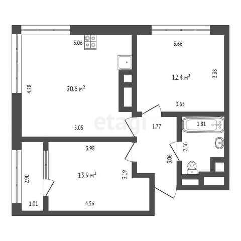 Общая площадь 57.1 м2