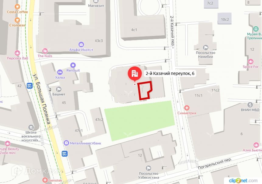 Дом в тихом переулке, в пешей доступности от знаменитого ПКиО им. Горького, неподалеку находится парк искусств "Музеон" с Крымской набережной. Развитая инфраструктура Замоскворечья, удобная транспортная доступность. Надежная охрана. Озелененная территория, детская игровая площадка, гостевая автостоянка, подземный паркинг.
