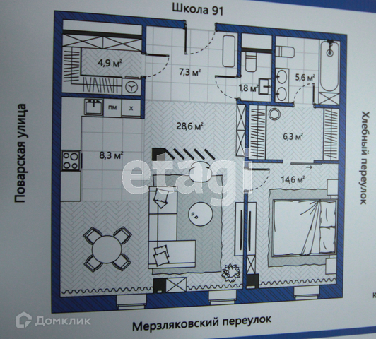 2-комнатная квартира, 77.4 м2, этаж 5 / 7, на продажу в Москве, Поварская улица, 8/1к1