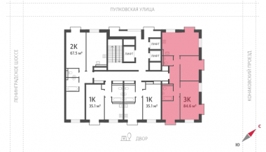 3-комнатная квартира, 84.9 м2, этаж 21 / 29, на продажу в Москве, Пулковская улица, 2