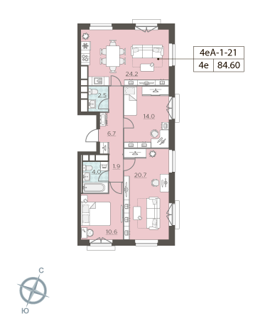 Общая площадь 84.9 м2