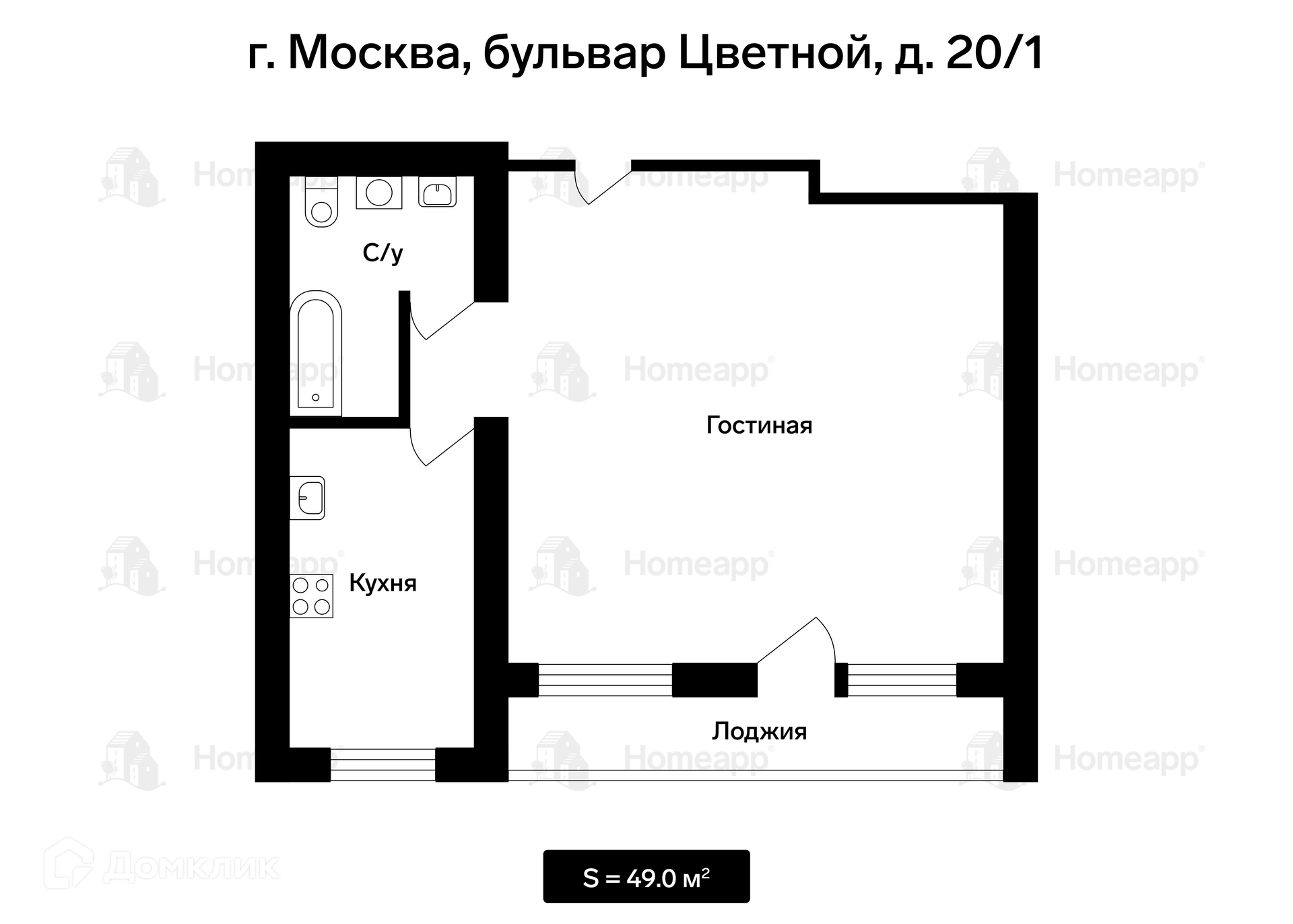 Общая площадь 49 м2