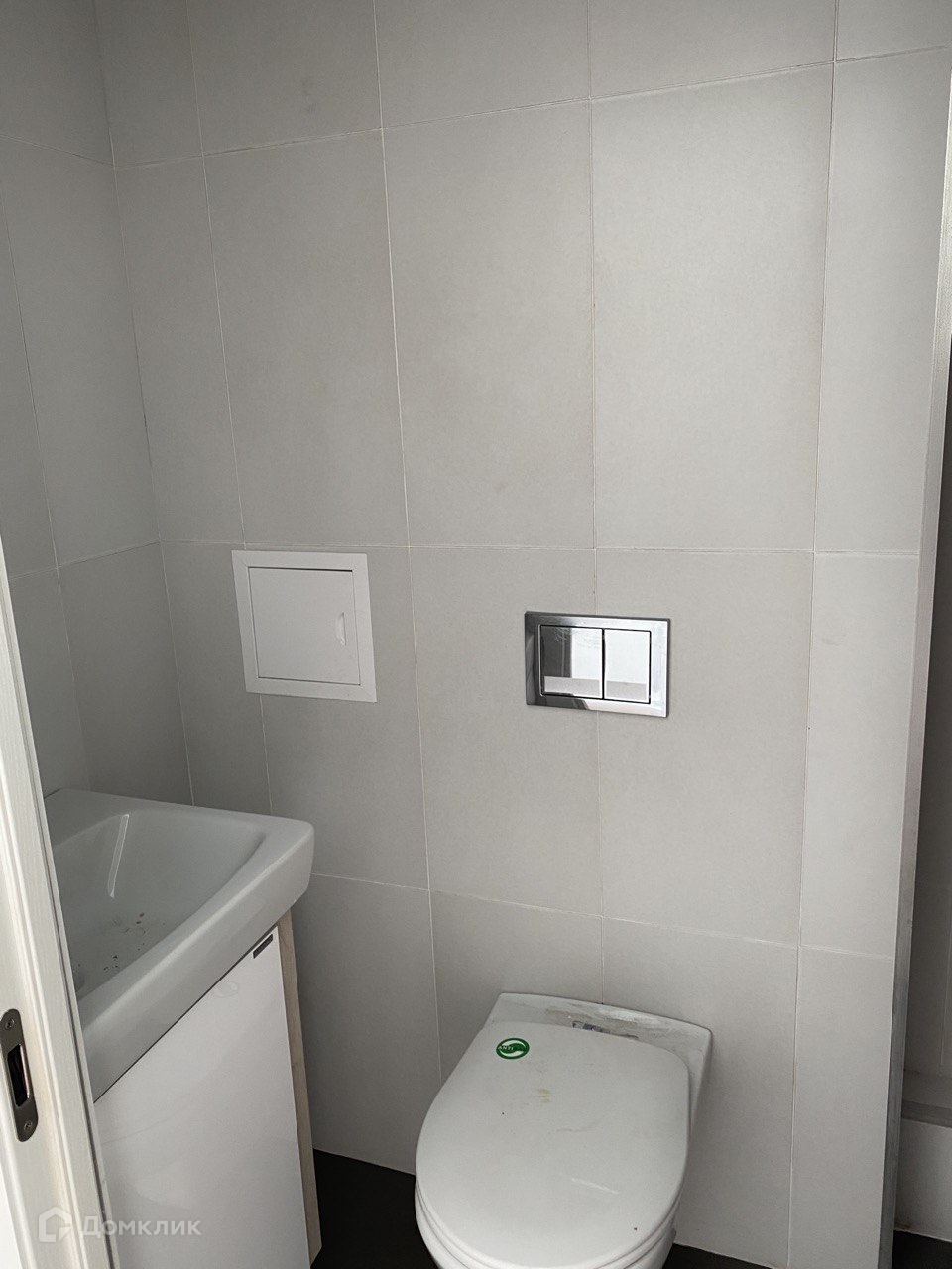 В санузле плитка, сантехника.