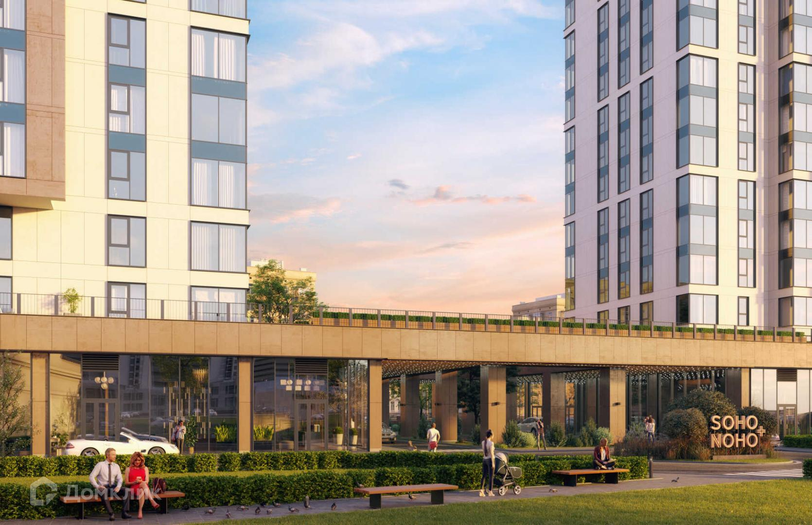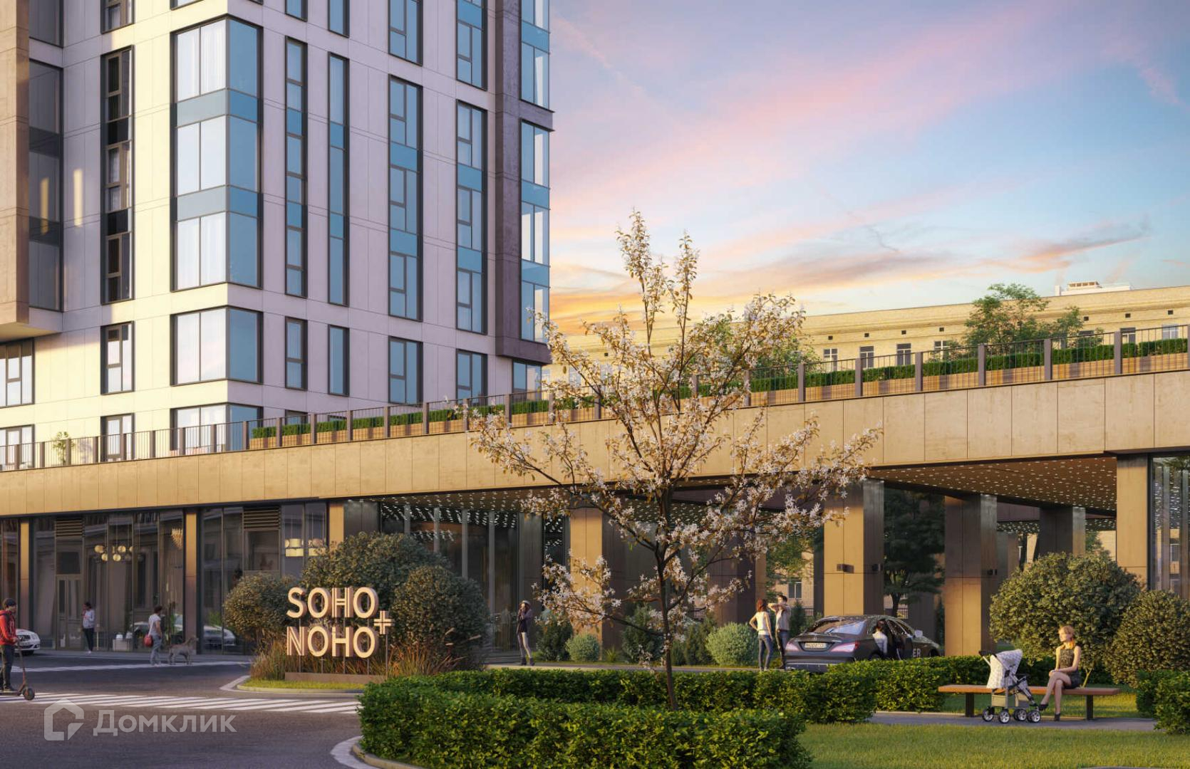 «Soho+Noho» — это клубный дом у метро Белорусская, состоящий из двух корпусов высотой по 20 этажей с панорамными окнами и террасам. Дом расположен в Бумажном проезде, что всего в 10 минутах ходьбы от Тверской улицы.