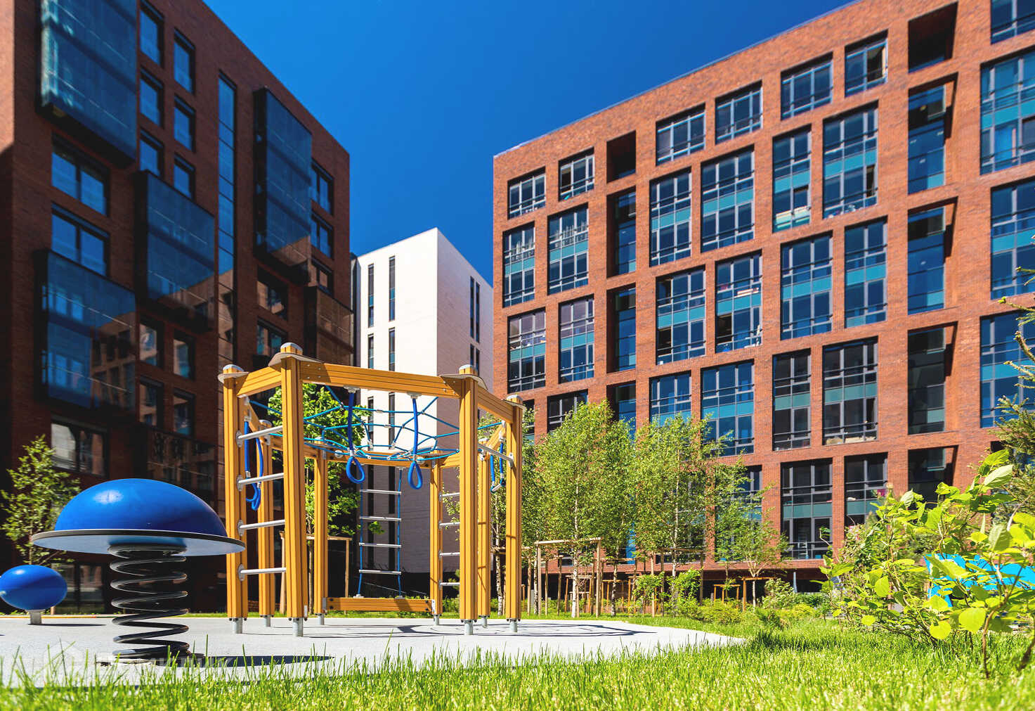 В основе концепции жилого комплекса создание в каждом квартале уникального приватного внутреннего двора, оснащенного детскими площадками и благоустроенными зонами отдыха.
