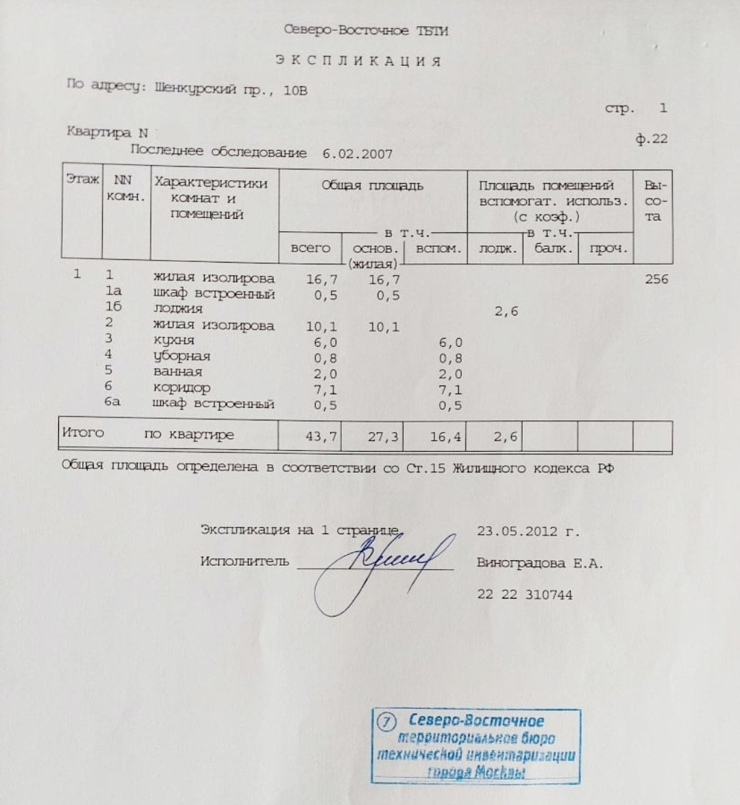 2-комнатная квартира, 43.7 м2, этаж 1 / 9, на продажу в Москве, Шенкурский проезд, 10В