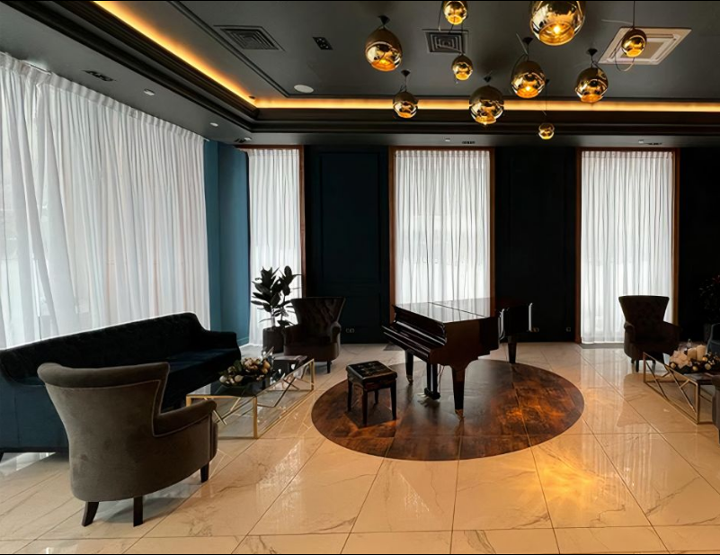 Возле комплекса расположены кинотеатр "Мир искусства" и Музей музыкальной культуры.