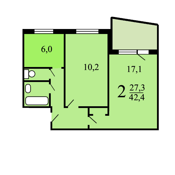 Общая площадь 42.4 м2