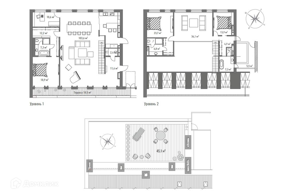 Планировочным решением предусмотрены: просторная кухня-гостиная, 4 спальни, 3 ванные комнаты, 3 гардеробные, гостевой санузел. Пентхаус продается в состоянии shell&core (без отделки).