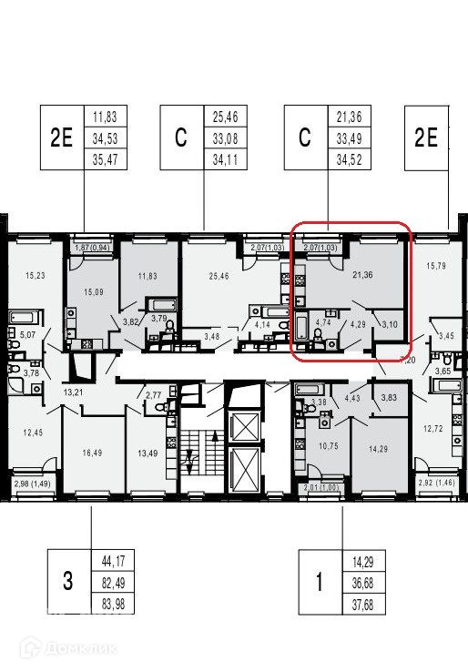 Общая площадь 34.52 м2