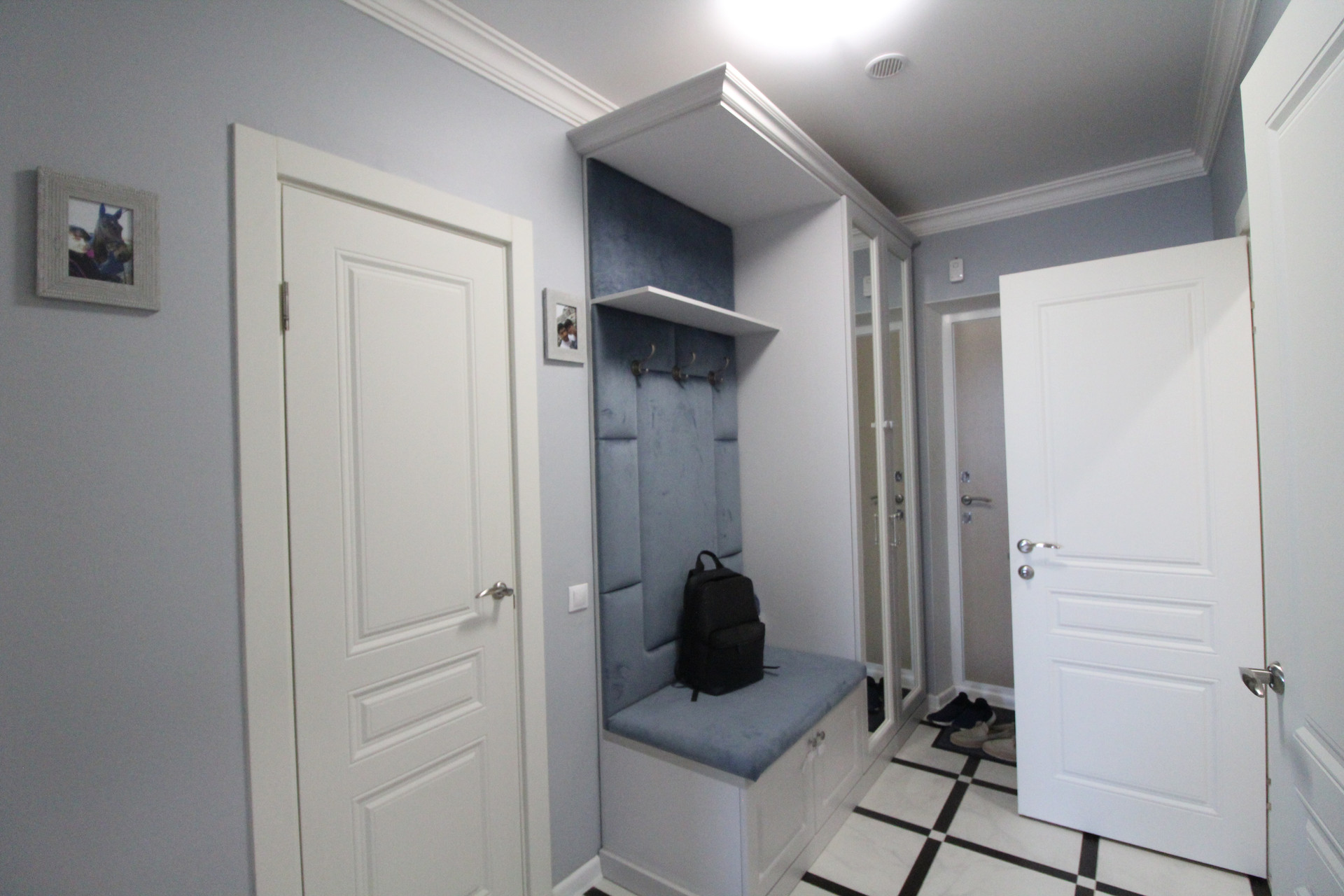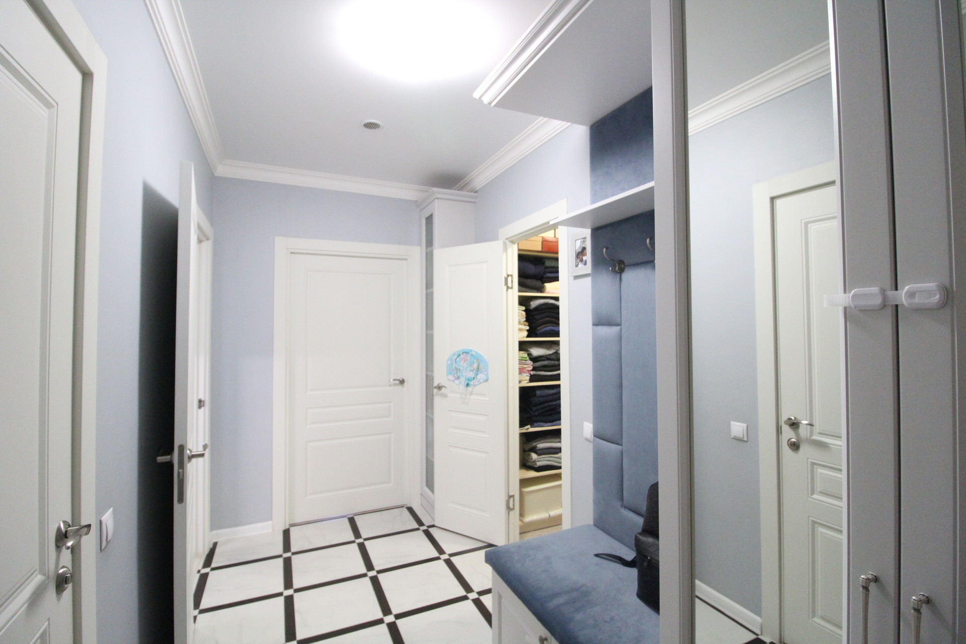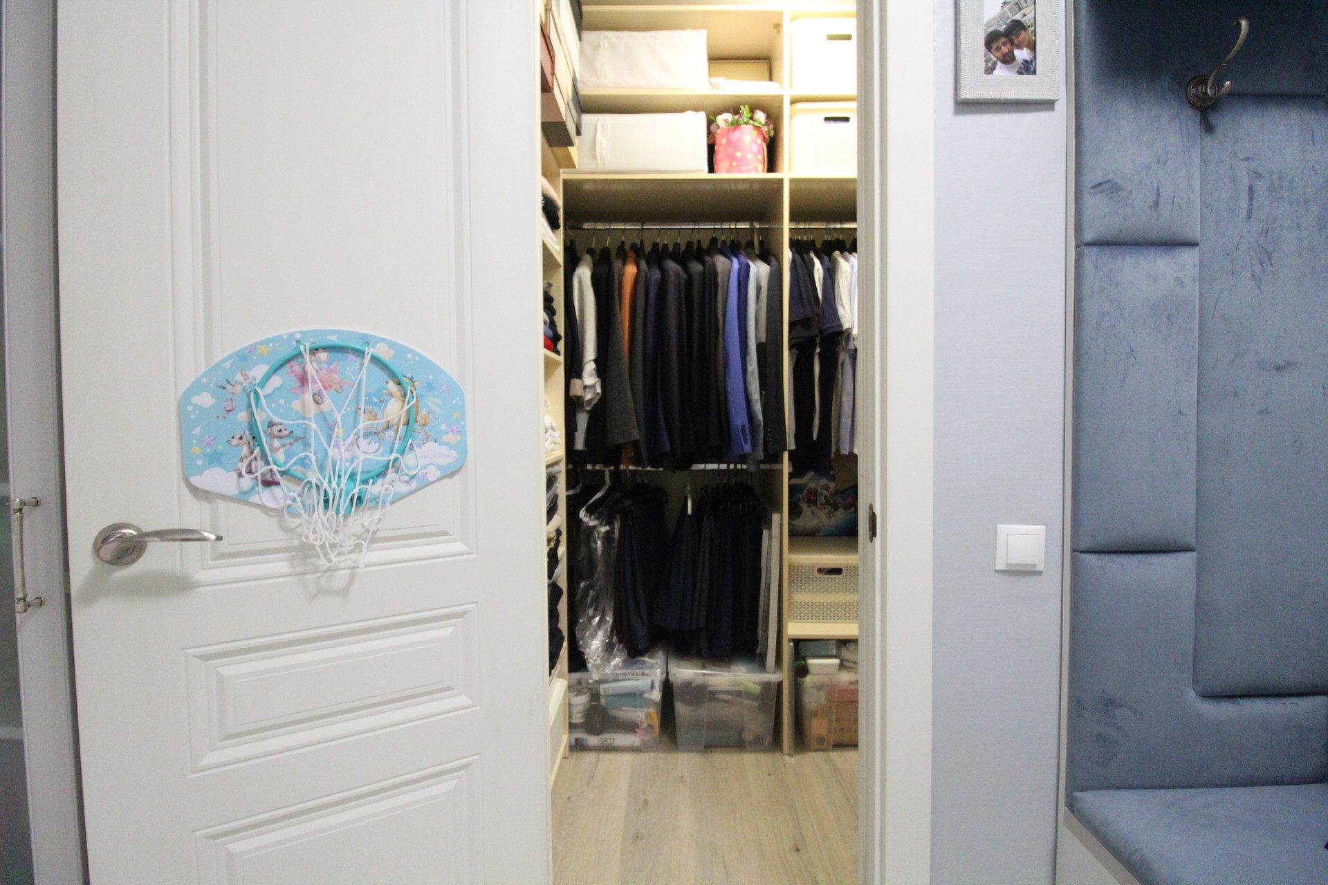 Полностью оборудованная гардеробная комната площадью 2,9 кв.м.