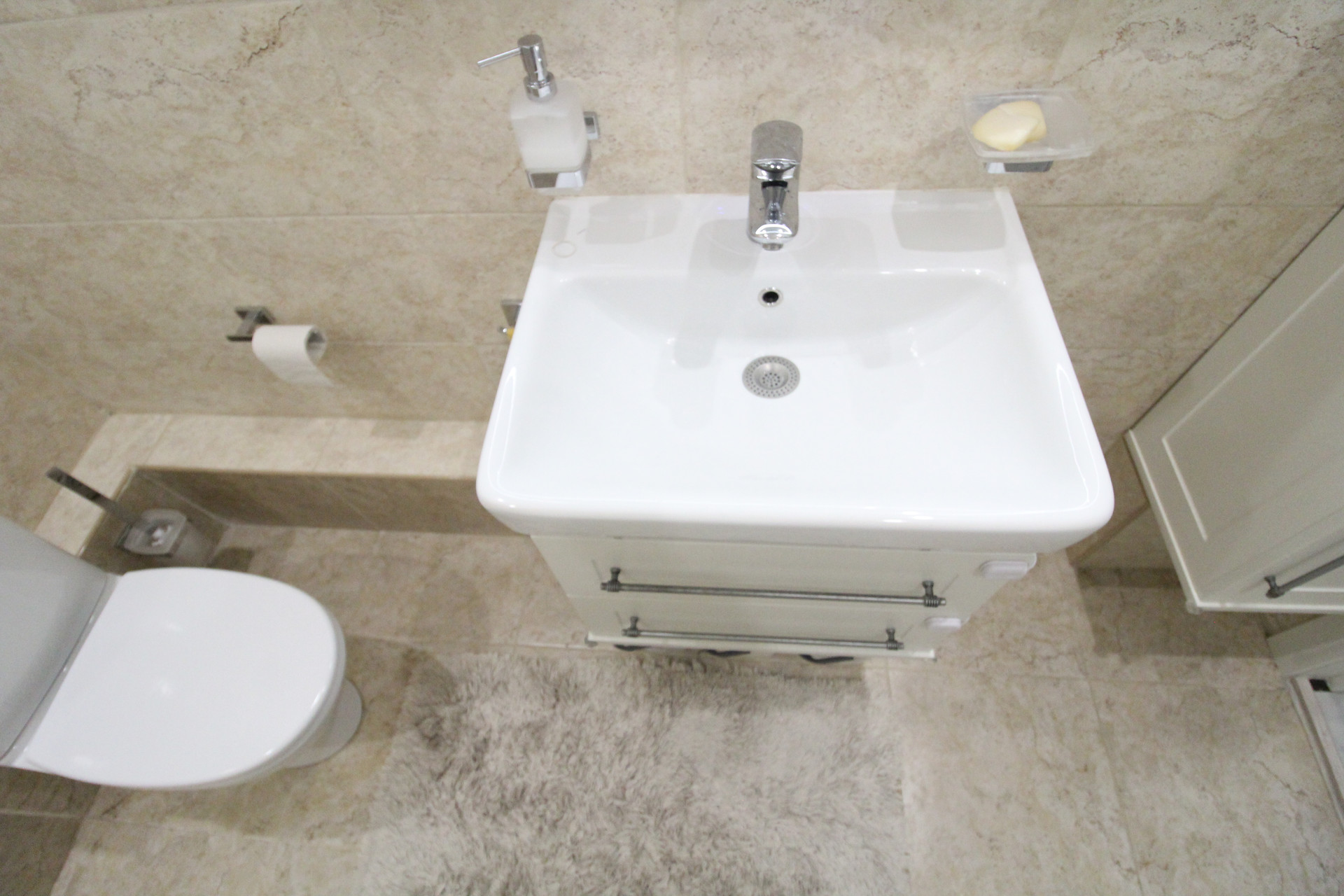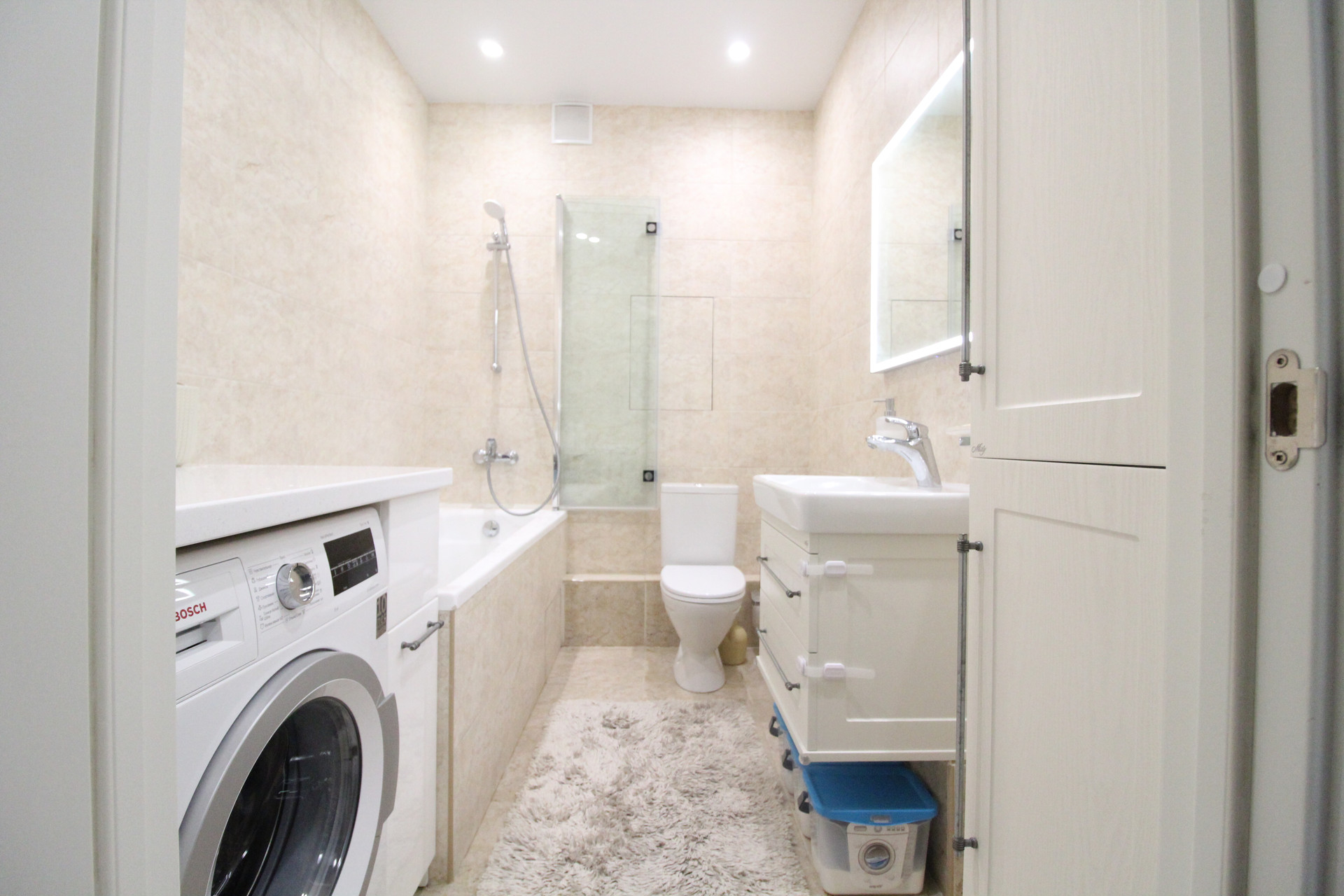 Ванная комната 4,9 кв м продумана до мелочей (от подобранной мебели с установленной каменной столешницей над стиральной машиной до стеклянной складной шторки для ванной). Продажа в связи с переездом. Один взрослый собственник. Свободная продажа. Возможна ипотека. Звоните.