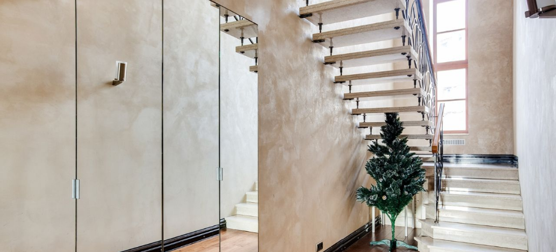 на 2-3 этажах. Выполнена дизайнерская отделка с использованием натурального