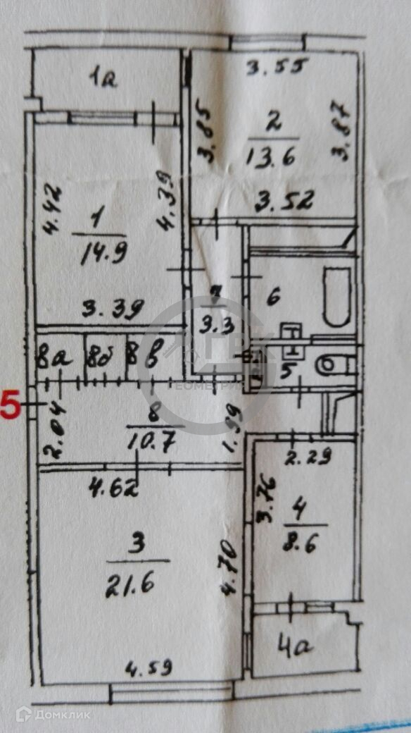 Жилая площадь 57.1 м2