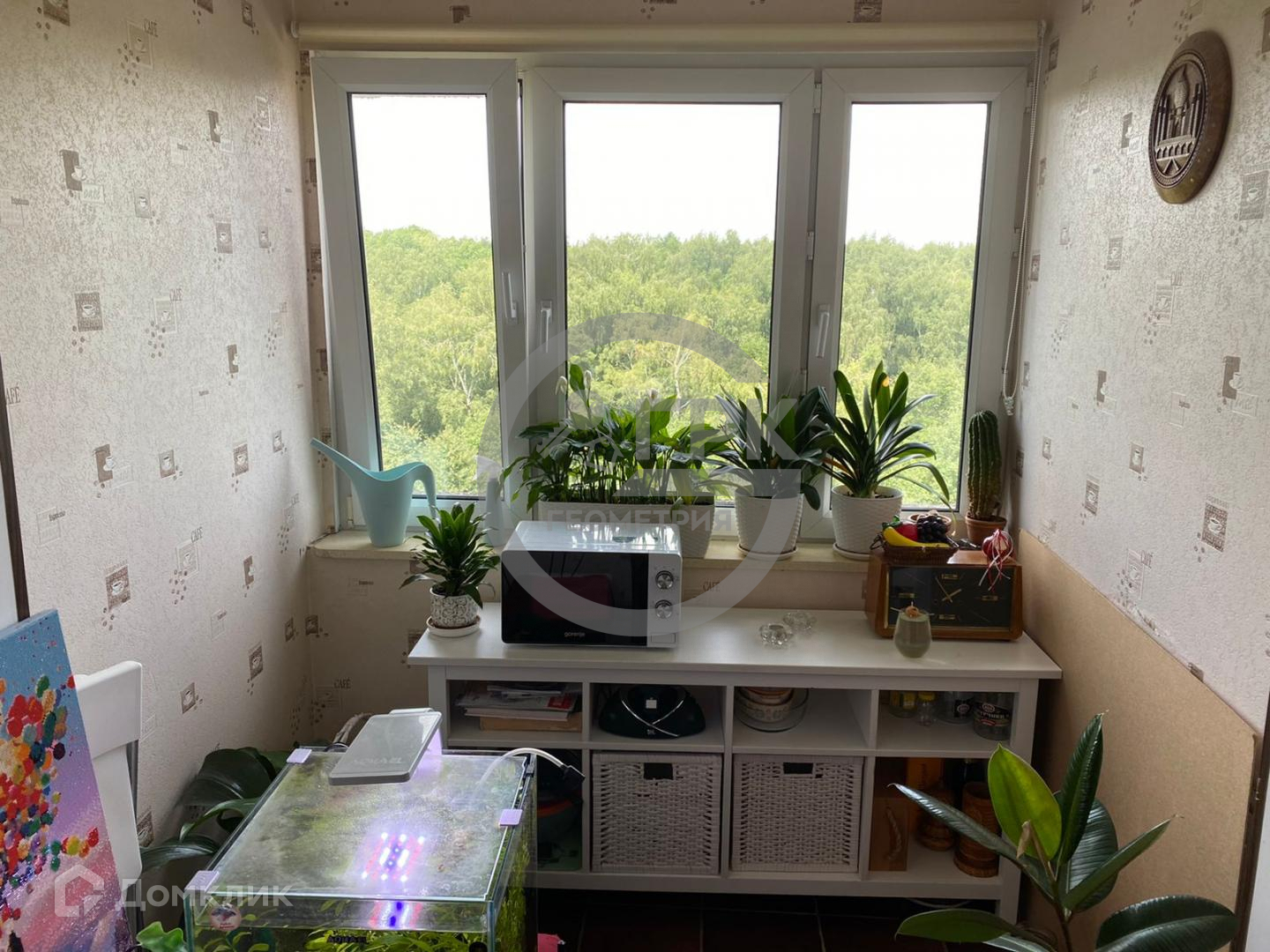 Квартира выходит окнами на восток и запад, с видом на лес.