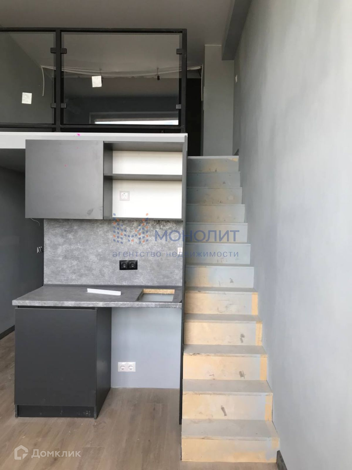 В студии: дизайнерский ремонт, панорамные окна, высокие потолки (4м), холодильник, электроплита.