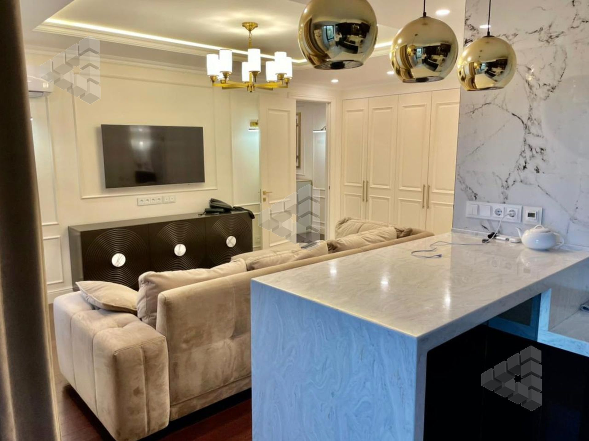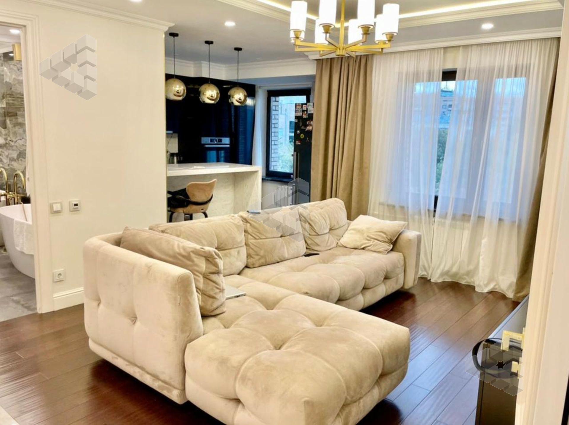 В квартире выполнен ремонт из дорогостоящих материалов.
