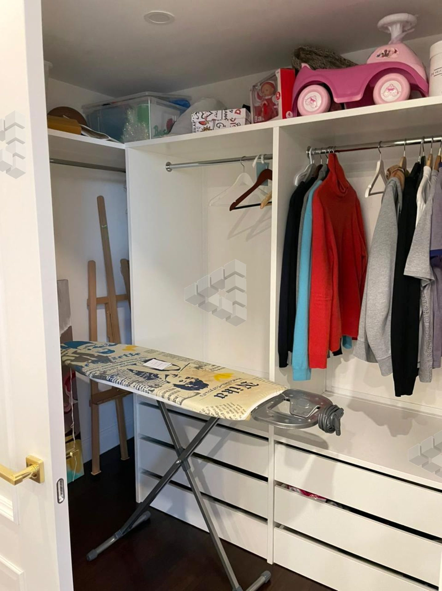 Планировка включает в себя: гостиная-кухня, спальня, гардеробная, санузел.