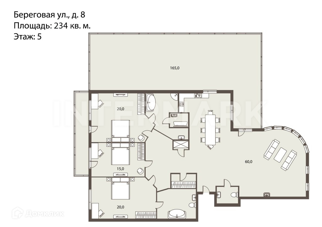 4-комнатная квартира, 234 м2, этаж 5 / 5, на продажу в Москве, Береговая улица, 8к1