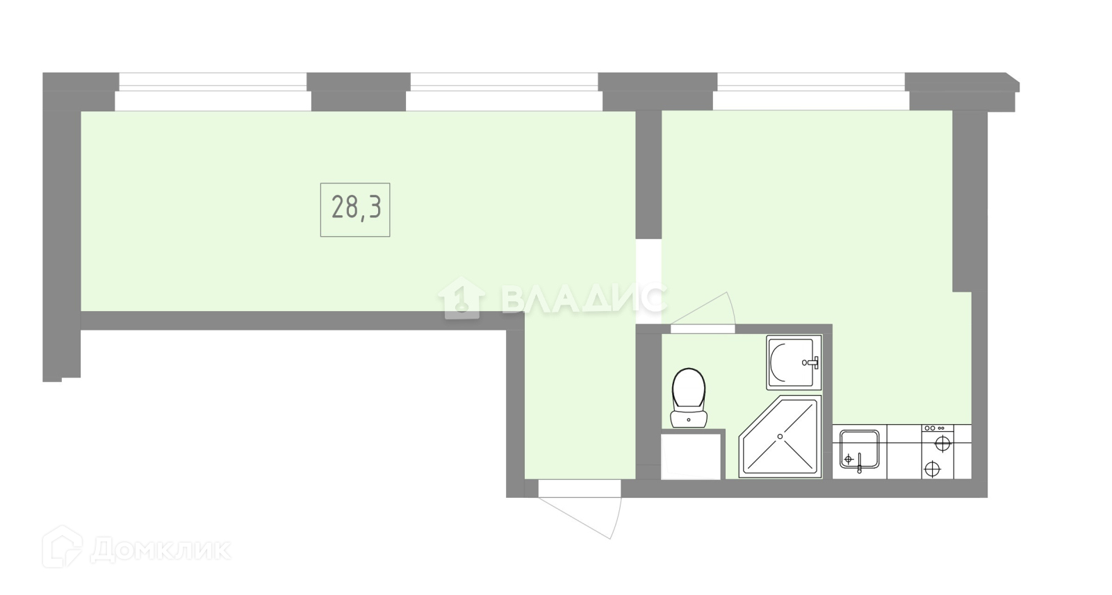 Общая площадь 28.3 м2