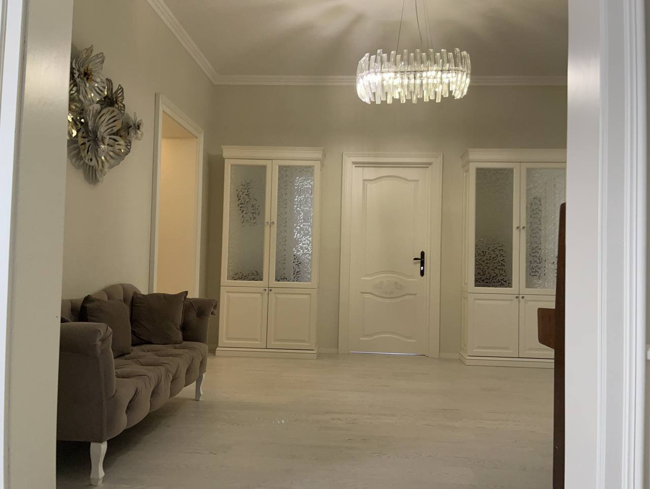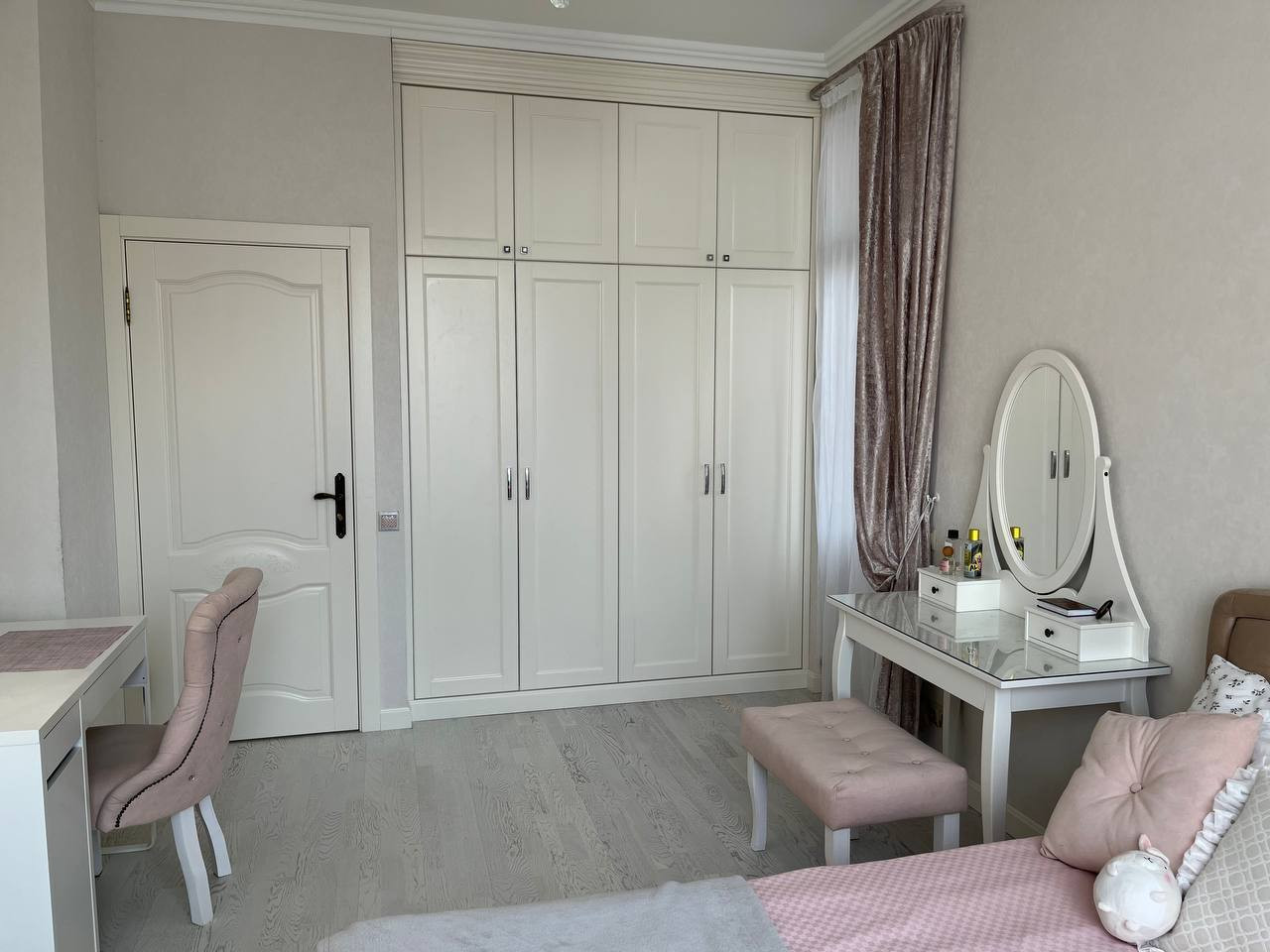 - 5 изолированных комнат (спальня с гардеробной, 3 детские, комната для гостей), гостиная, кухня, гардеробная, большая лоджия, 2 санузла;