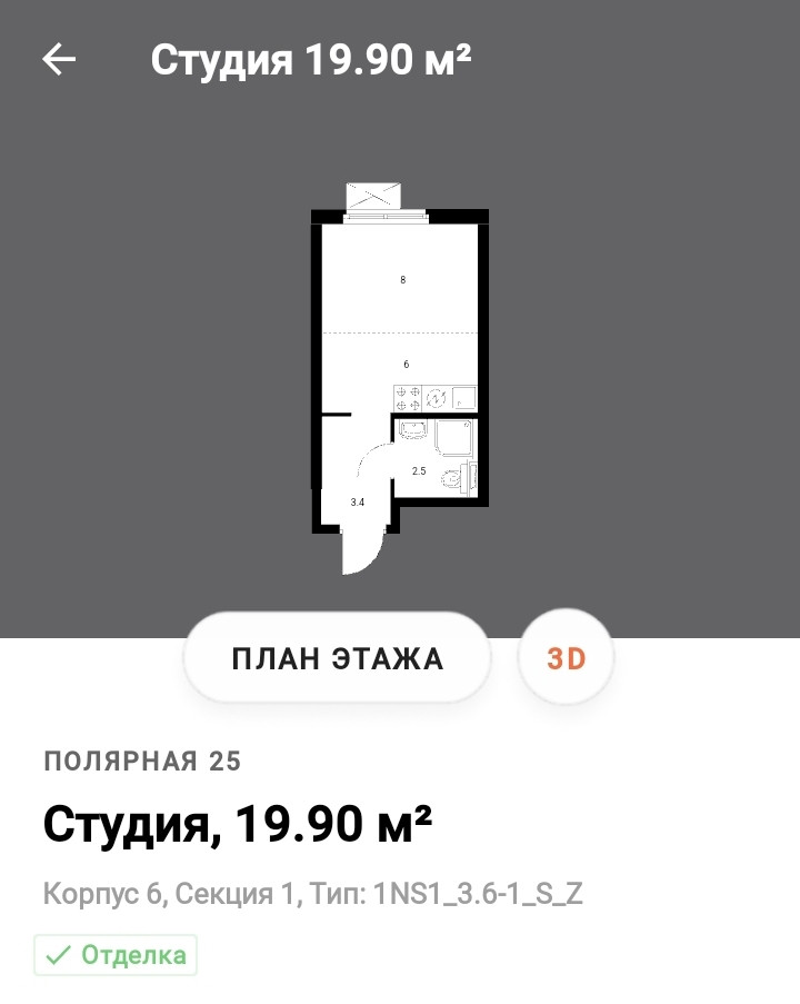 Общая площадь 19.8 м2