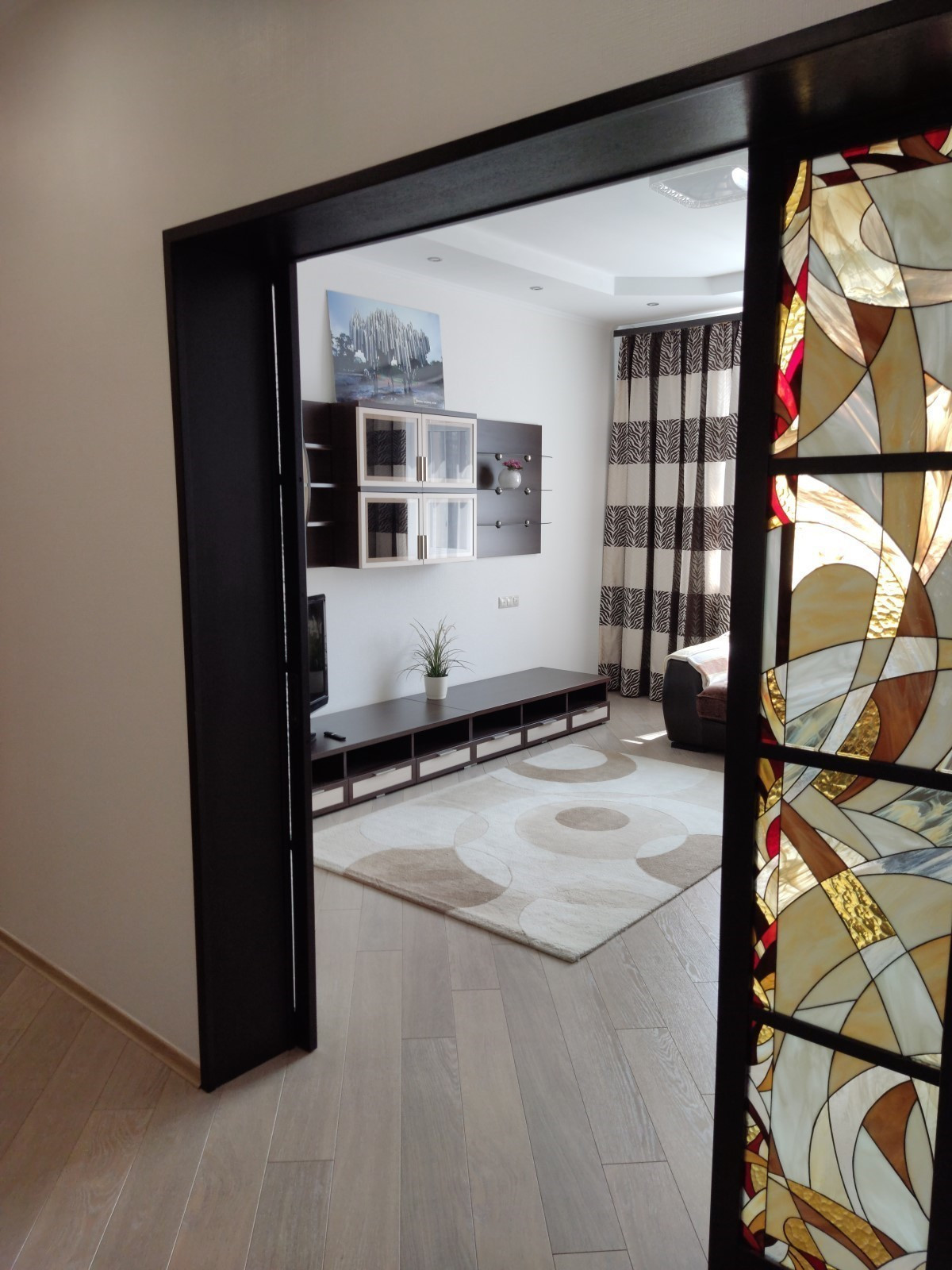 Дизайнерский ремонт в светлых тонах из качественных материалов. В зонах с керамогранитом тёплый пол. Раздвижные витражные двери из коридора в гостиную. Общая фактическая площадь с балконами около 82 кв.м: просторный холл 19 кв.м со встроенными шкафами; совмещённый санузел 6,2 кв.м; кухня 11,7 кв.м +гостиная 20,6 кв.м со всей необходимой встроенной бытовой техникой; спальная комната 16,7 кв.м. с гардеробной комнатой 3 кв.м. Высота потолков 3 м. Две застеклённые и утеплённые лоджии: из спальни и из кухни по 3 кв.м. Квартира укомплектована мягкой мебелью, кроватью с тумбочками, шкафами и другими местами хранения. Окна выходят на солнечную сторону, с видом на тихий приватный двор комплекса и на "Авиапарк". Установлены современные кондиционеры в каждой комнате.