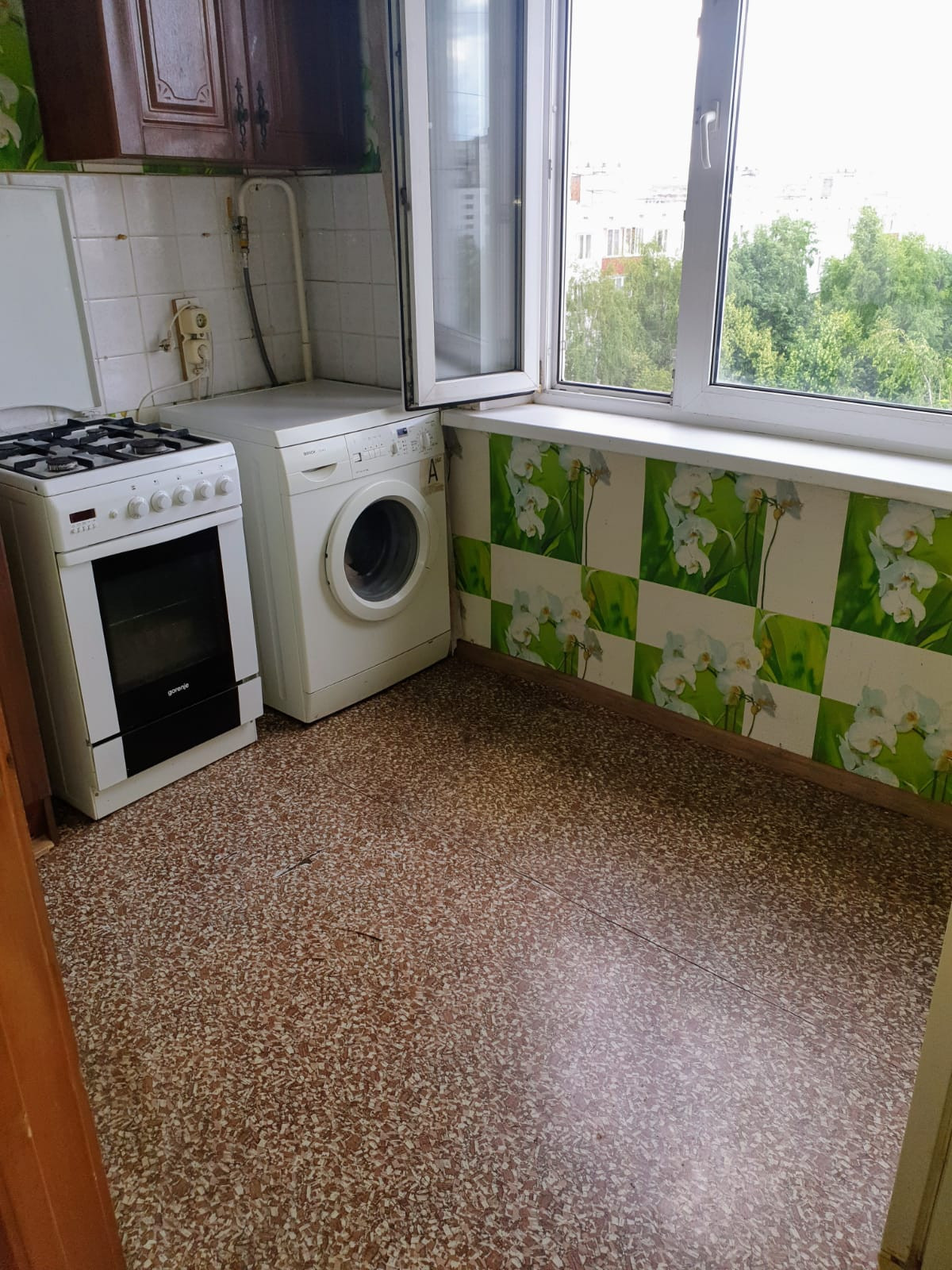 Застекленный балкон. Кухня газифицирована.