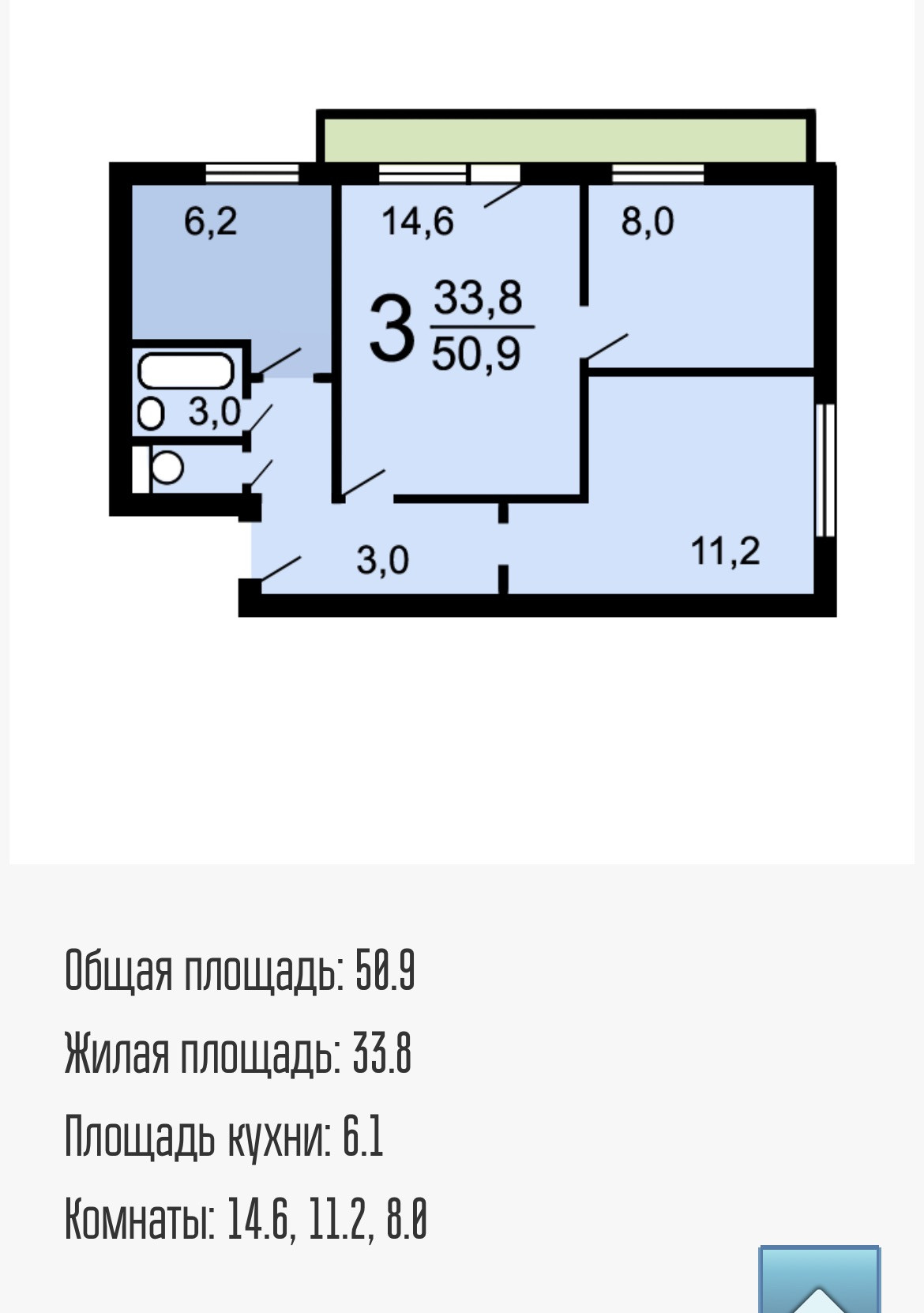 Общая площадь 55 м2