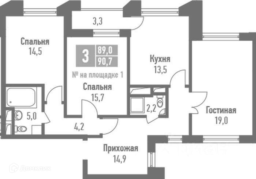 Общая площадь 89.4 м2