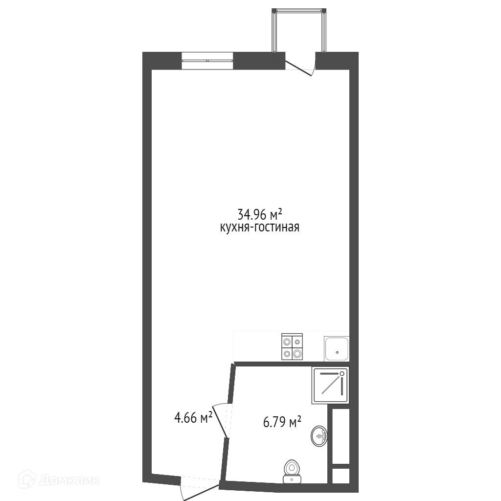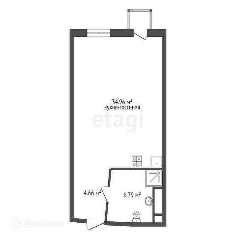 Общая площадь 46.4 м2