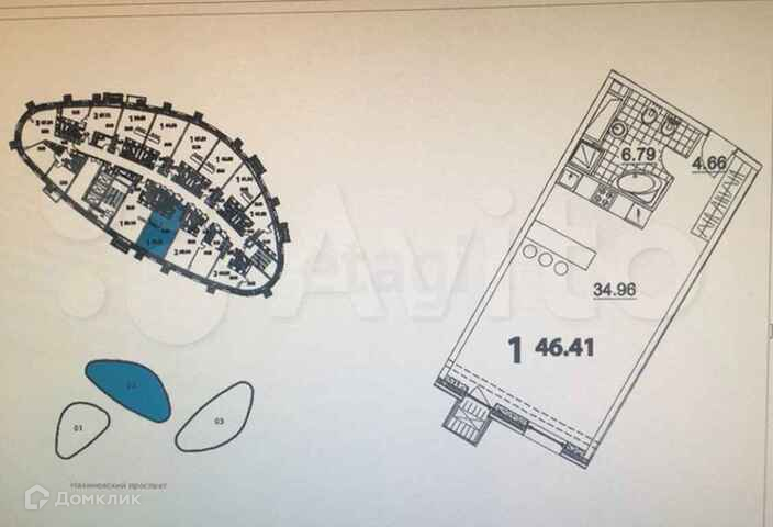 Квартира студия, 46.4 м2, этаж 10 / 23, на продажу в Москве, Нахимовский проспект, 31к2