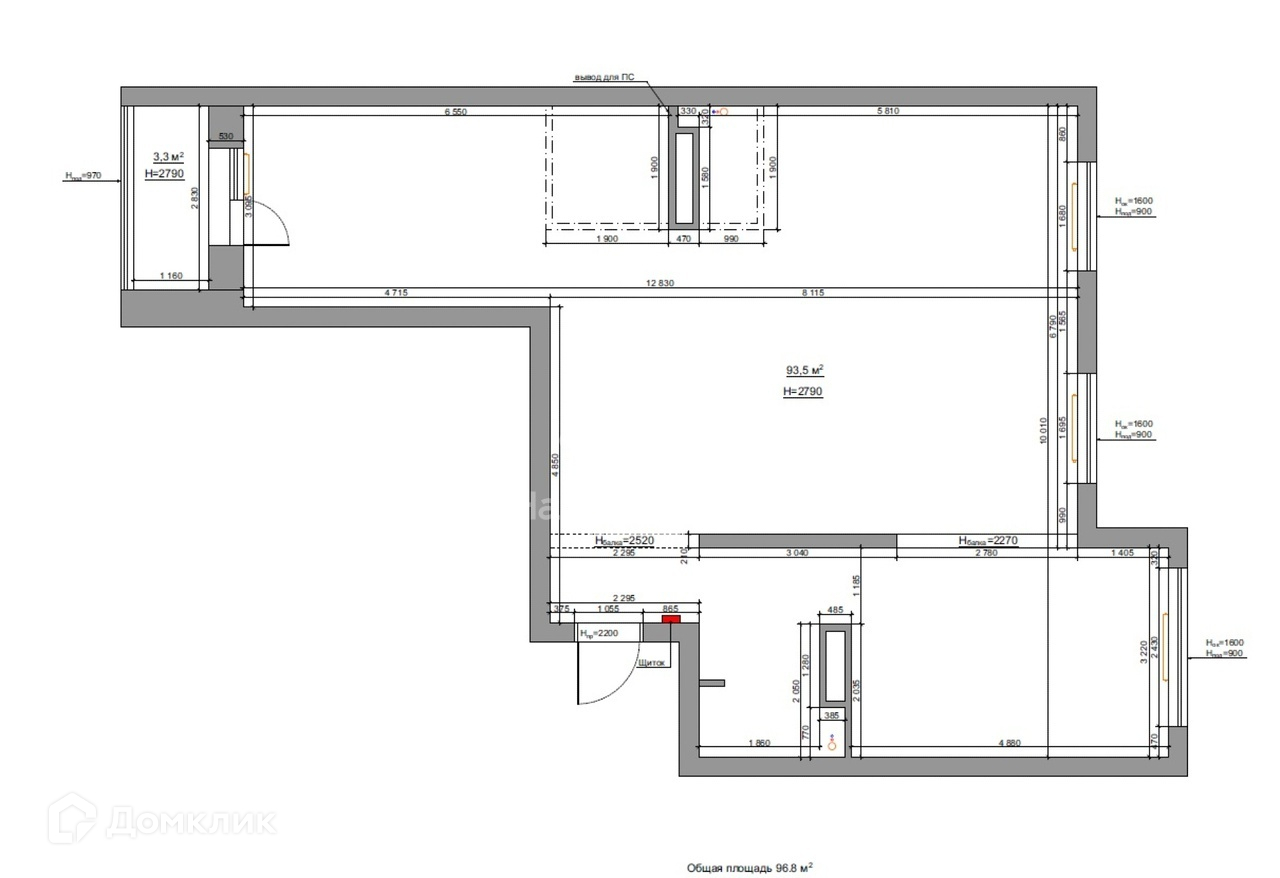 Высота потолков 2.8 м