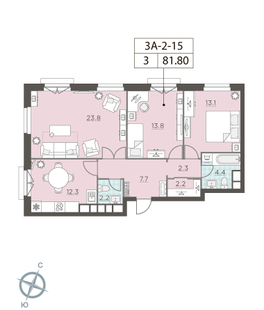 Общая площадь 81.7 м2