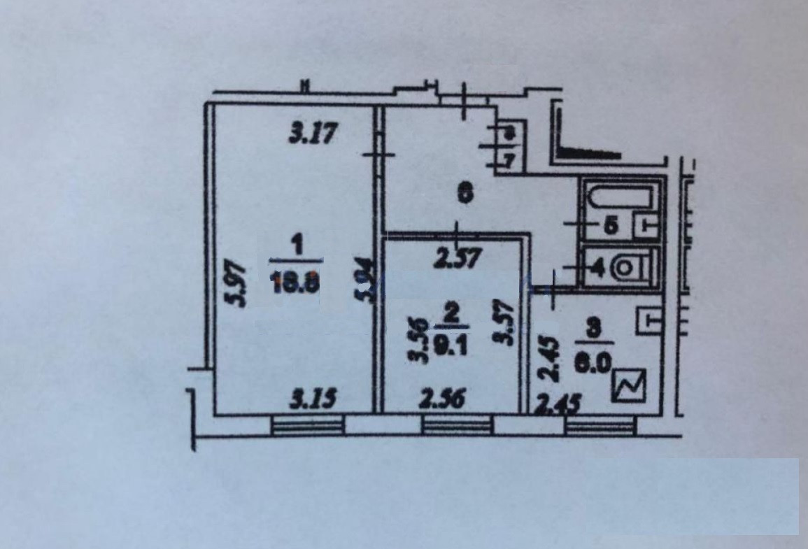 Общая площадь 44.9 м2